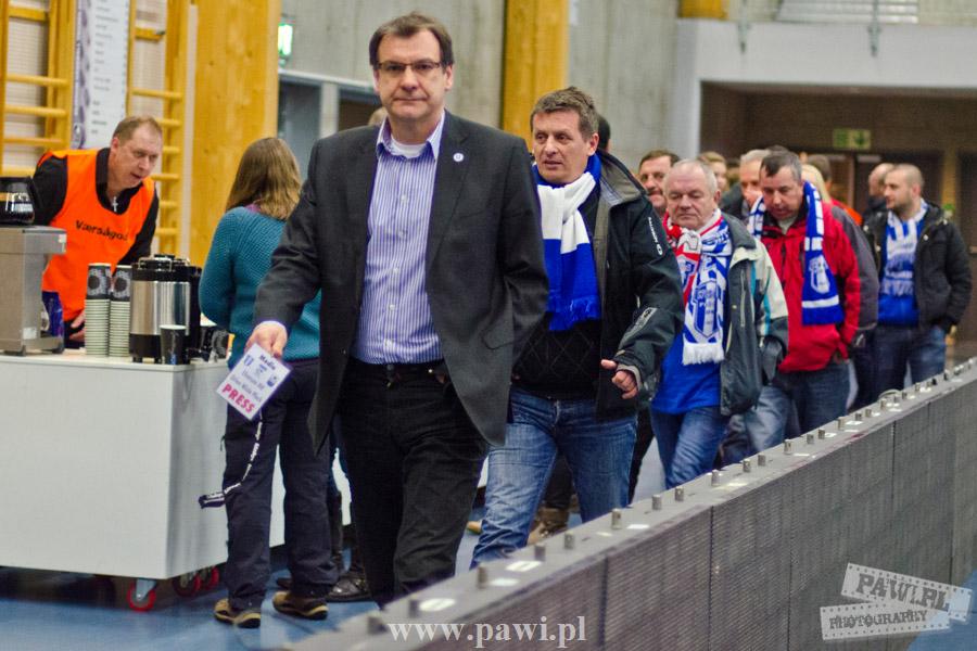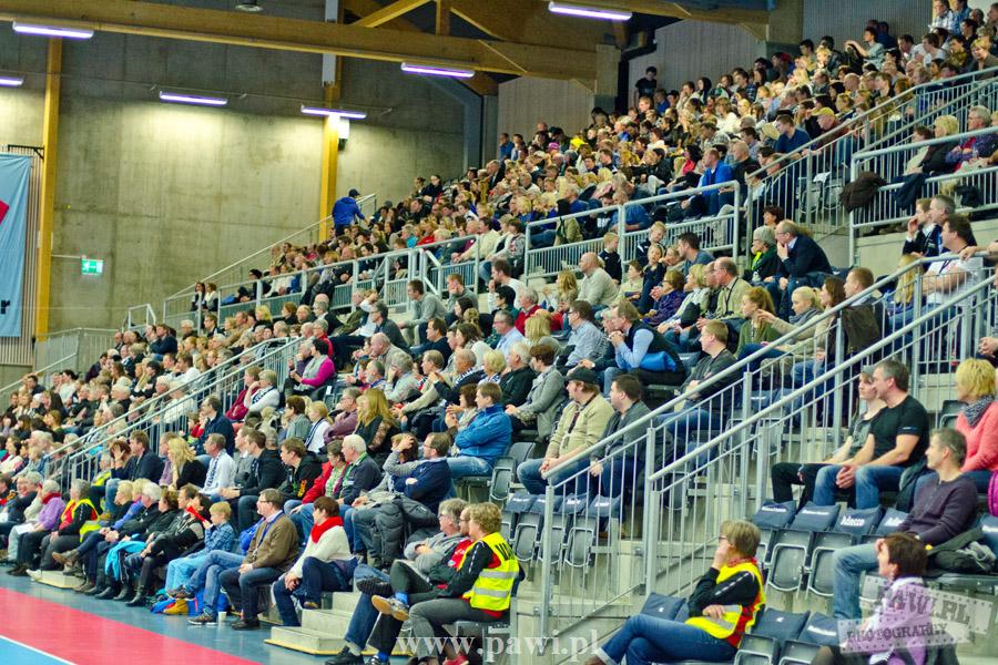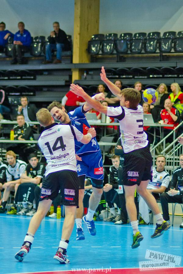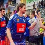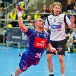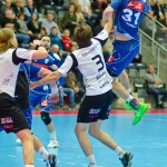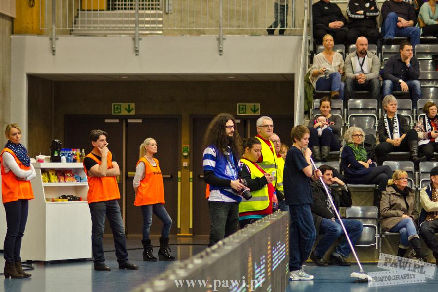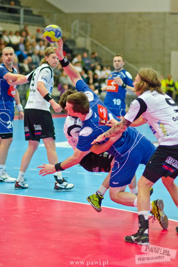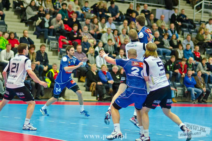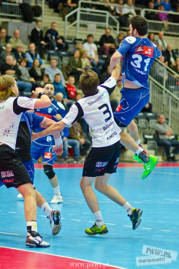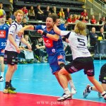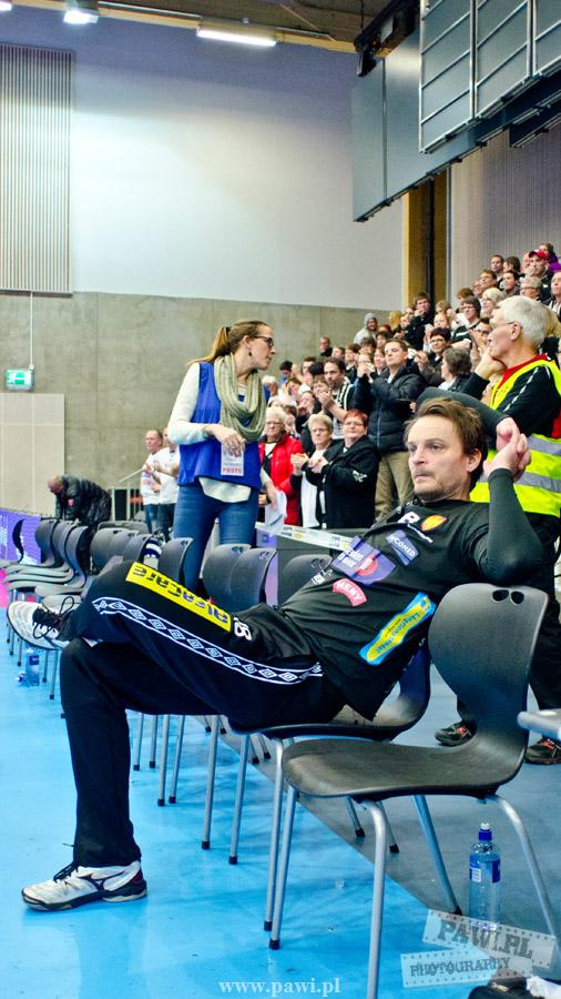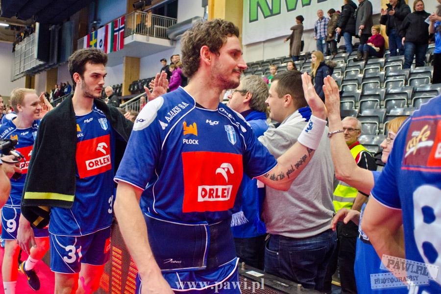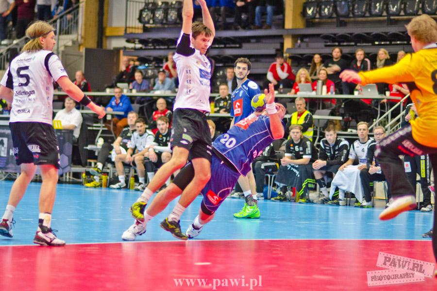 Początek w wykonaniu naszej drużyny stał pod znakiem rażącej nieskuteczności i serii prostych błędów. Gospodarze wykorzystali słabszą postawę Wiślaków, prezentując przy tym styl gry, o którym jeszcze przed pojedynkiem opowiadali Nafciarze, czyli podwyższona obrona i szybkie kontrataki. To doprowadziło do stanu 8:4 dla Norwegów, po czym szkoleniowiec naszej drużyny w 16. minucie po raz pierwszy poprosił o przerwę. Po wznowieniu gry przewaga gospodarzy urosła do pięciu czek, co podziałało jak kubeł zimnej wody na wicemistrzów Polski, którzy wyraźnie poprawili skuteczność i już pięć minut później przegrywali tylko 8:10. Rzuty Norwegów natomiast coraz częściej zaczęły odbijać się od Marcina Wicharego, a widzący niemoc swoich podopiecznych Christian Berge położył na stoliku sędziowskim zieloną tabliczkę. Niestety i tym razem minutowa przerwa odmieniła przebieg wydarzeń na parkiecie. Norwegie czterokrotnie znaleźli drogę do bramki Wichury, na co odpowiedział tylko Paweł Paczkowski rzutem z biodra. Dobrą zmianę w płockiej bramce dał Marin Šego, jednak jego koledzy z pola seryjnie marnowali kolejne okazji do odrobienia strat. Wraz z syreną kończącą pierwszą część spotkania, kolejną bramkę na swoim koncie zapisał E.Toft, czym ustalił stan meczu na 14:10 dla gospodarzy. Niestety Nafciarze nie prezentowali formy, do której przyzwyczaili kibiców w pierwszej części sezonu. Elverum całkowicie zneutralizowało płockich skrzydłowych oraz Petara Nenadicia, który mimo kilku prób zapisał na swoim koncie tylko jedno trafienie.